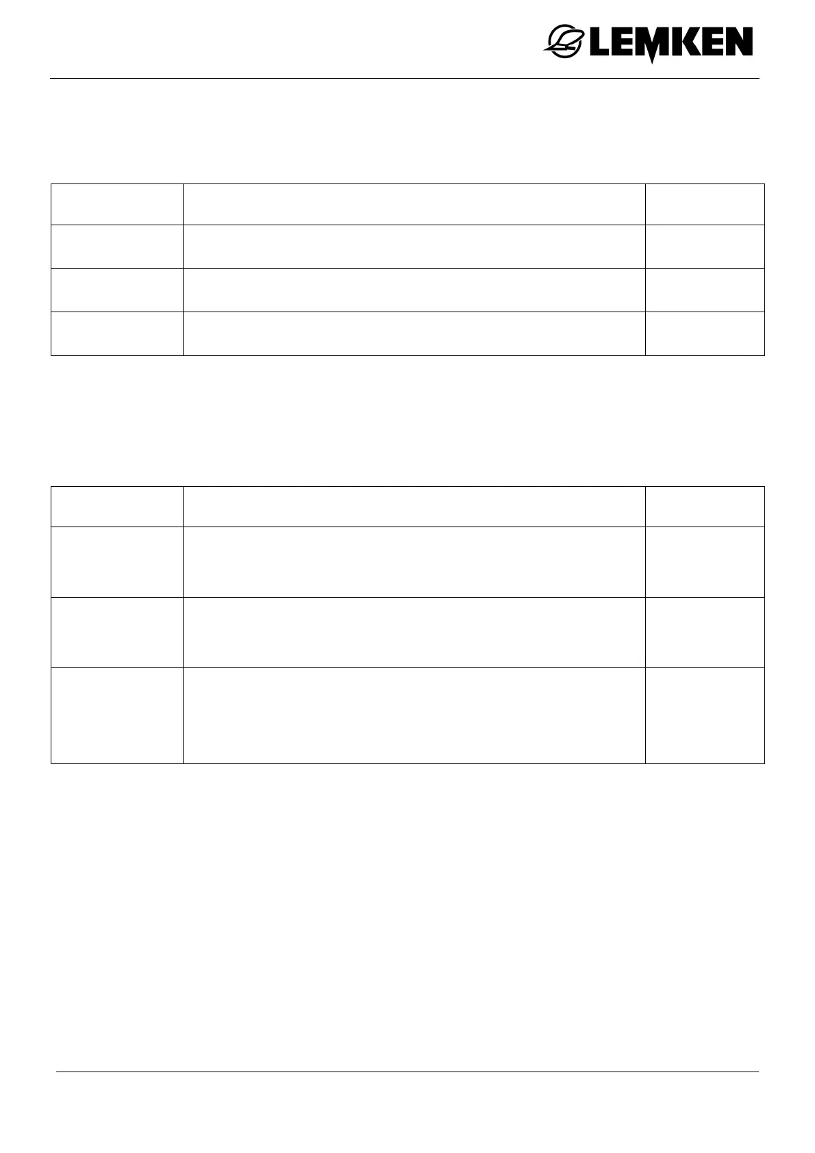 Data from implement operating instructions