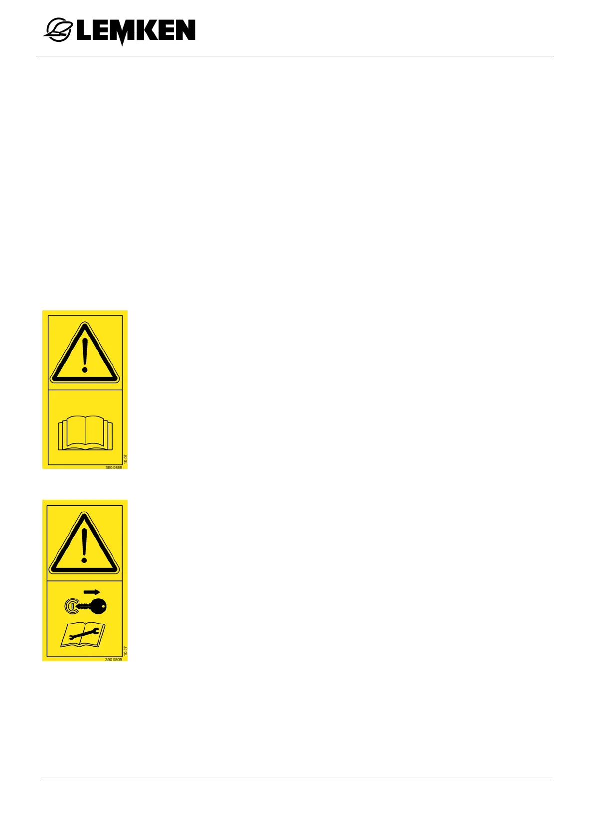 signs are affixed which indicate these residual risks. Damaged, lost or illegible