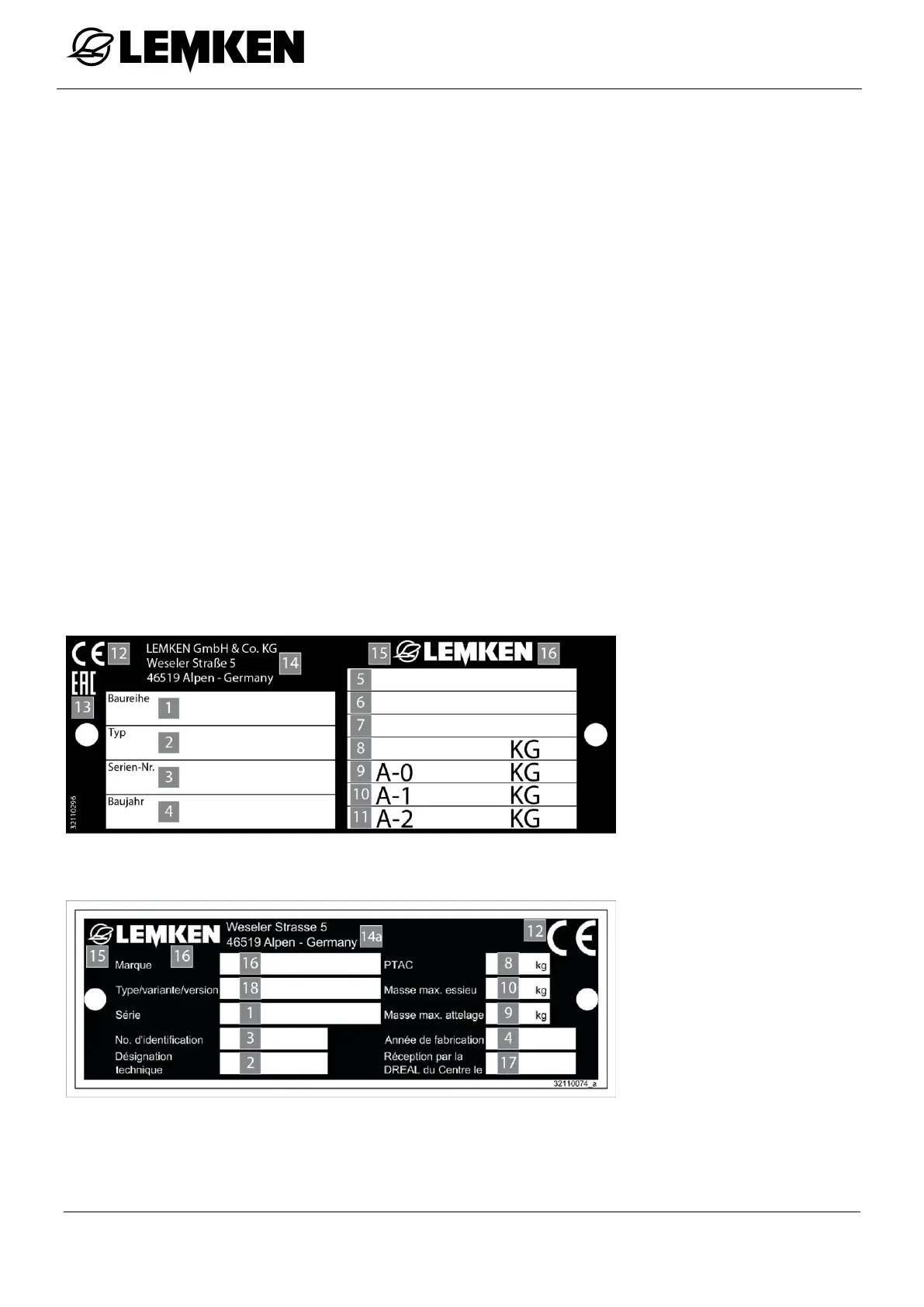 The implement is marked with a type plate.