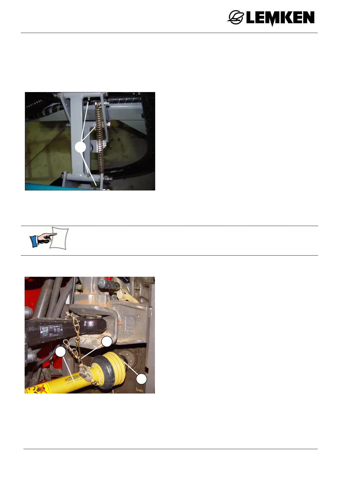 The drive shaft must be serviced on the tractor side and the implement side.