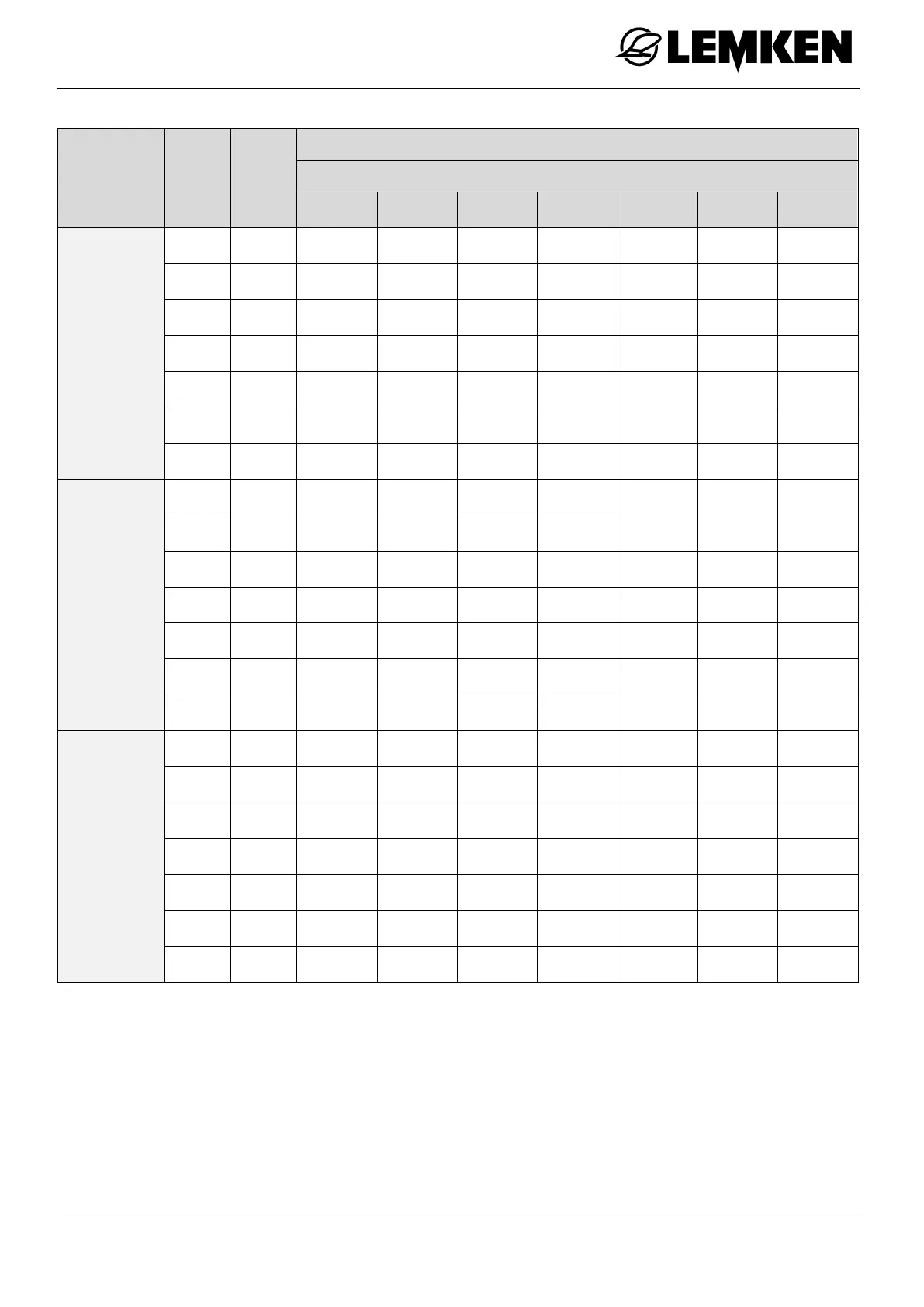 The values in the table apply to UAN liquid fertiliser at 1.30 kg/l and 10°C.