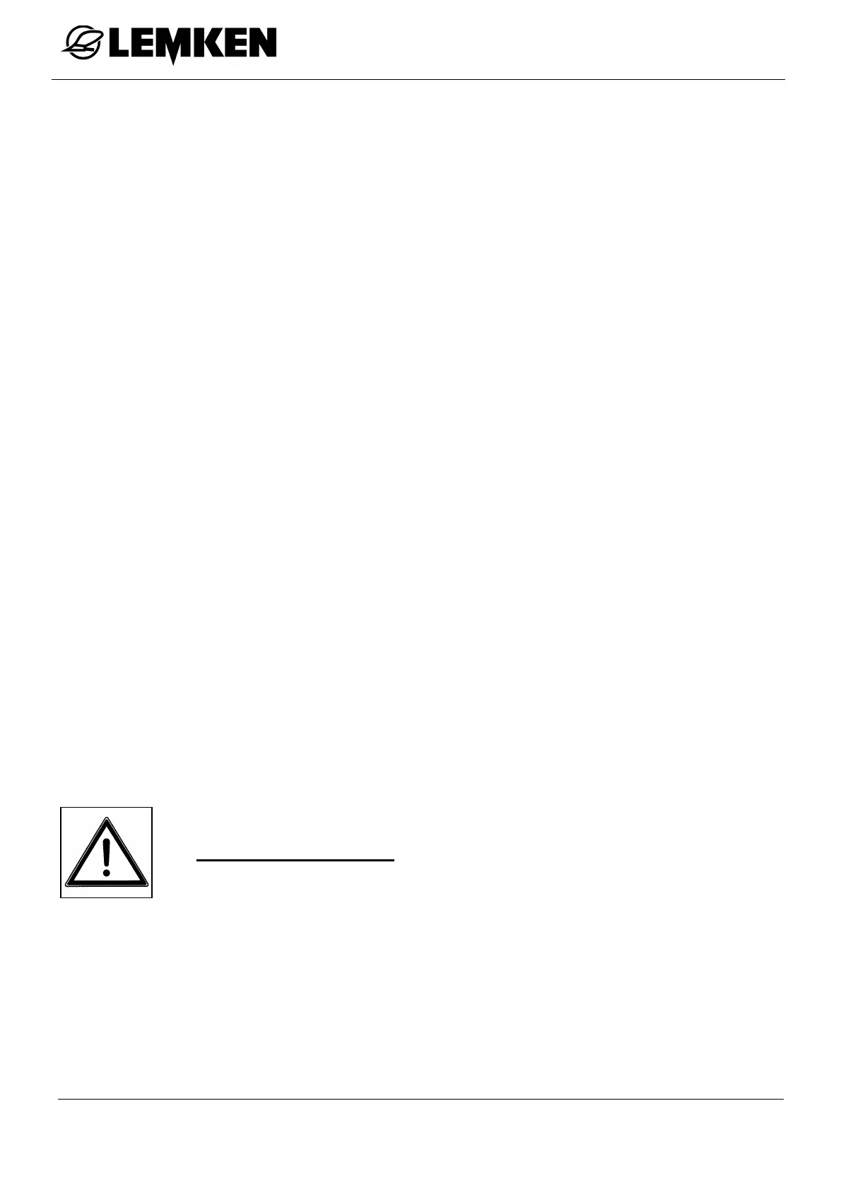 • Before leaving the tractor lower the machine to the ground. Apply the parking