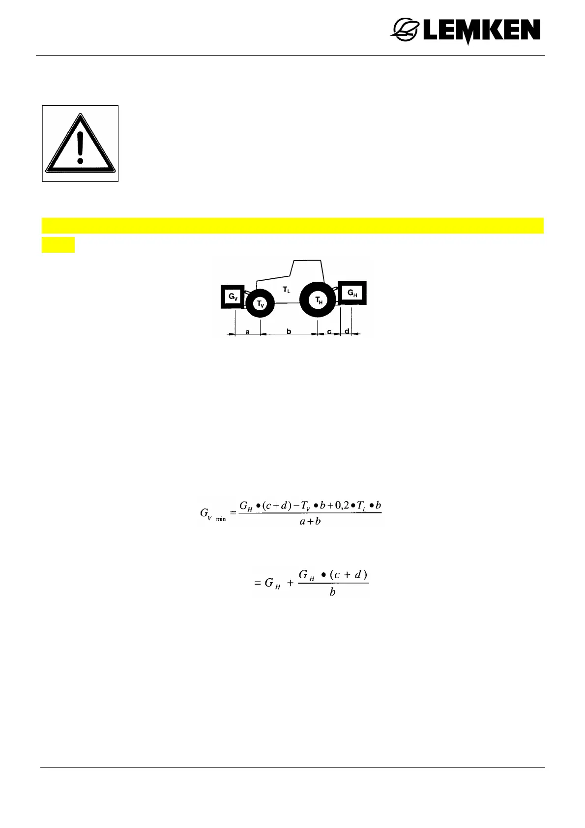 The tractor front axle must always be loaded with 20 % of the