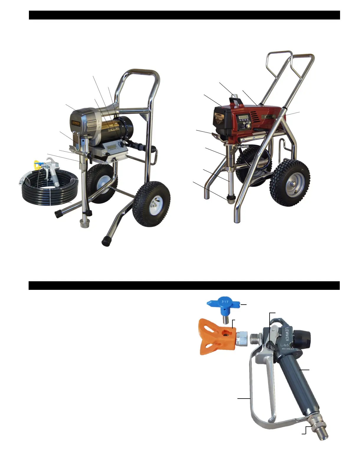 3) Connect high pressure airless paint hose to pump outlet. Tighten to