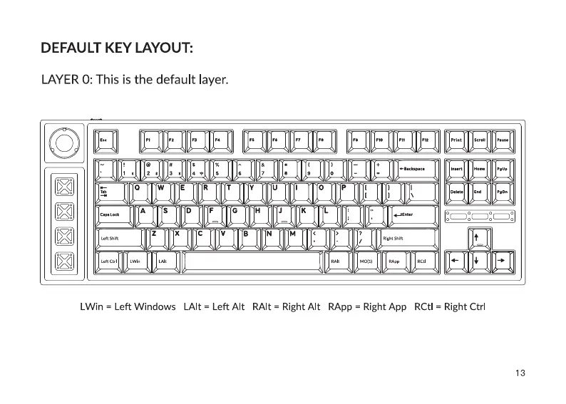 Lemokey L3 - DEFAULT KEY LAYOUT; LAYER 0: This is the default layer.