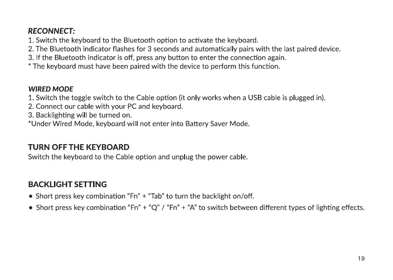 *Under Wired Mode, keyboard will not enter into Battery Saver Mode.