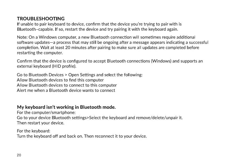 If unable to pair keyboard to device, confirm that the device you're trying to pair with is