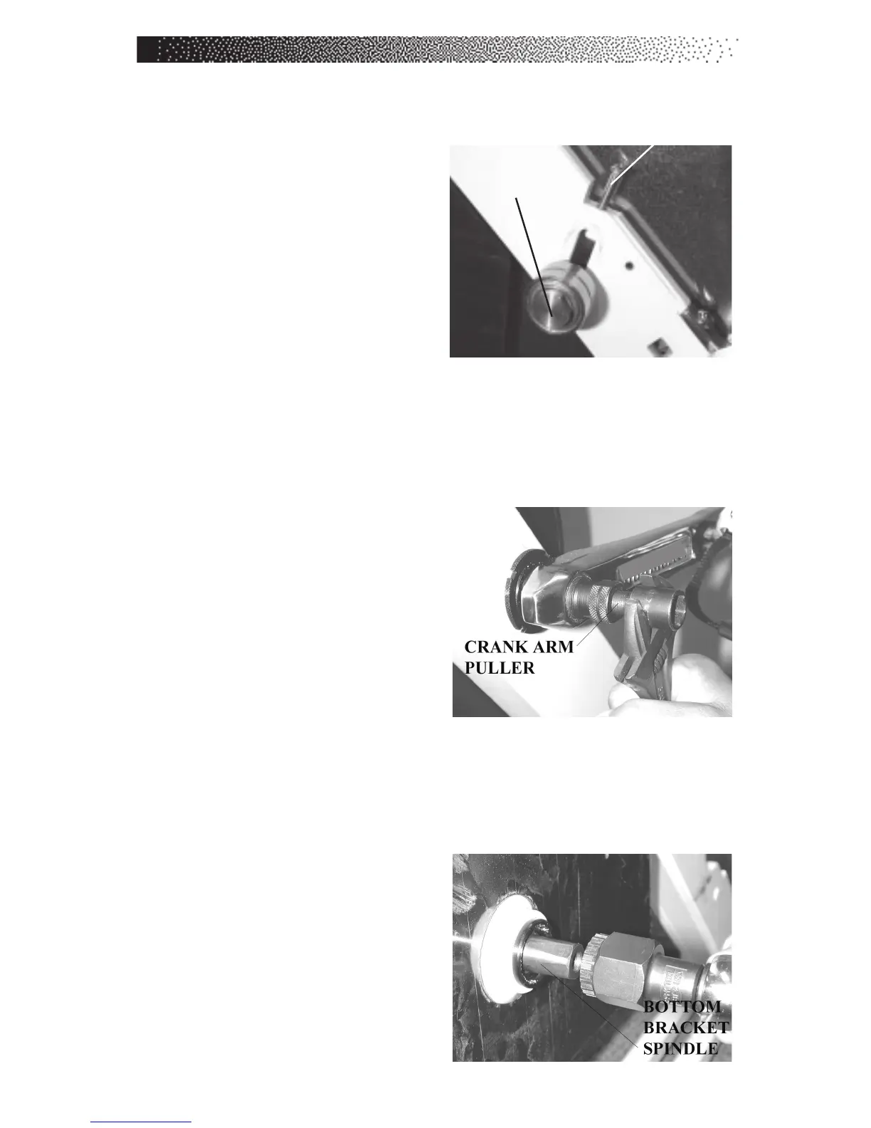arm will pull off the crank arm shaft. Remove the crank arm from the