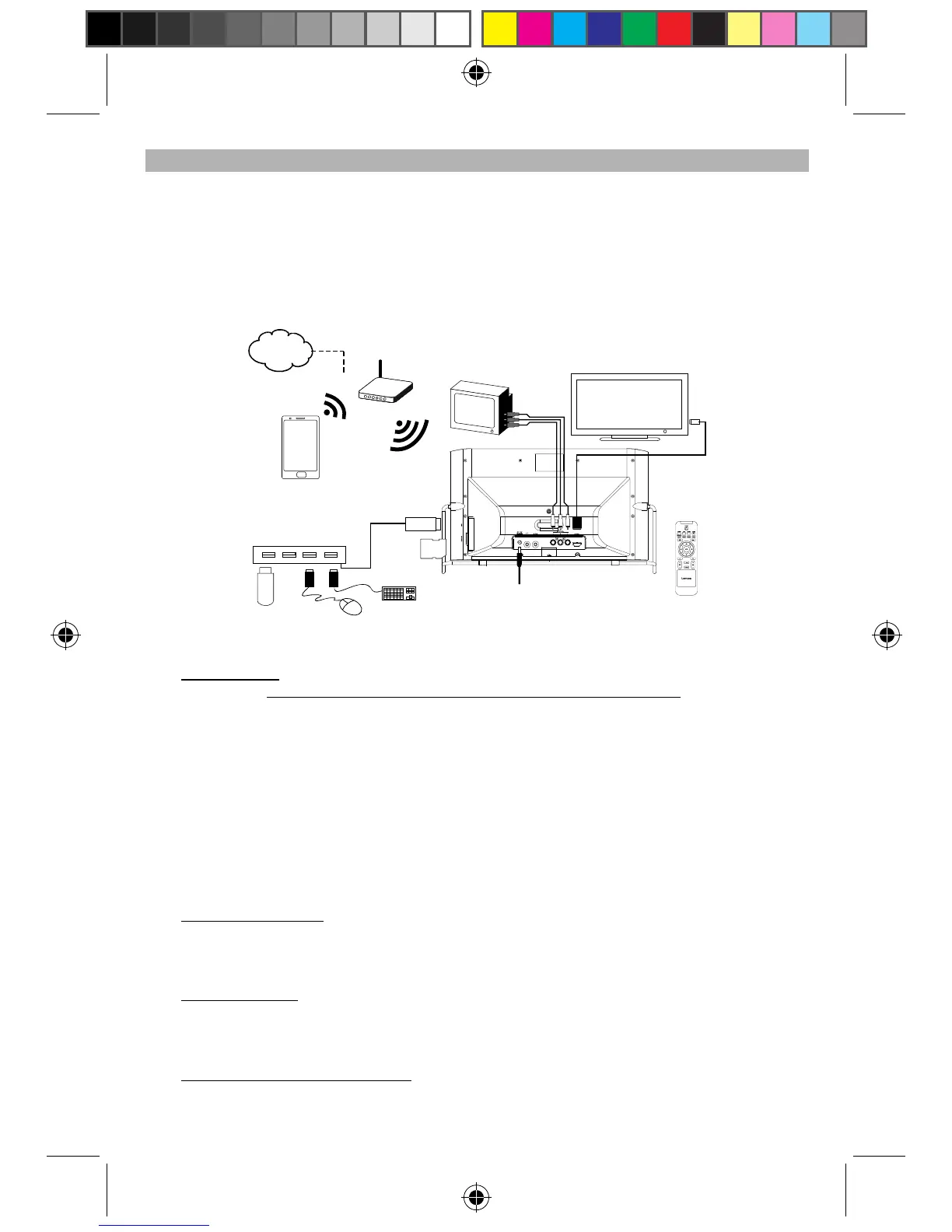 Note: For Wi-Fi (wireless) setup, please read “Settings” section in this manual. To have