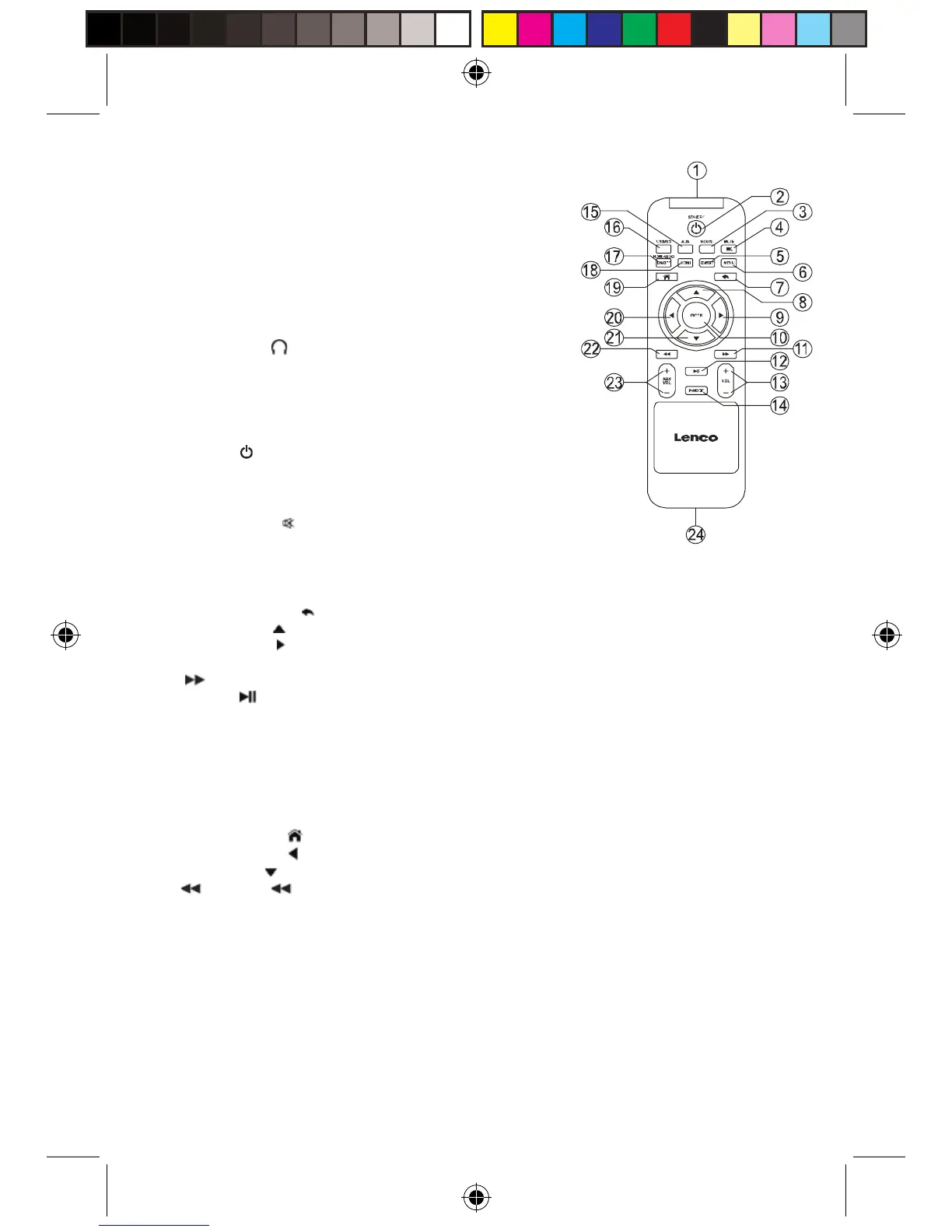 23. Touche AUX VOL +/- ----- Augmente ou diminue le volume de l’audio auxiliaire.
