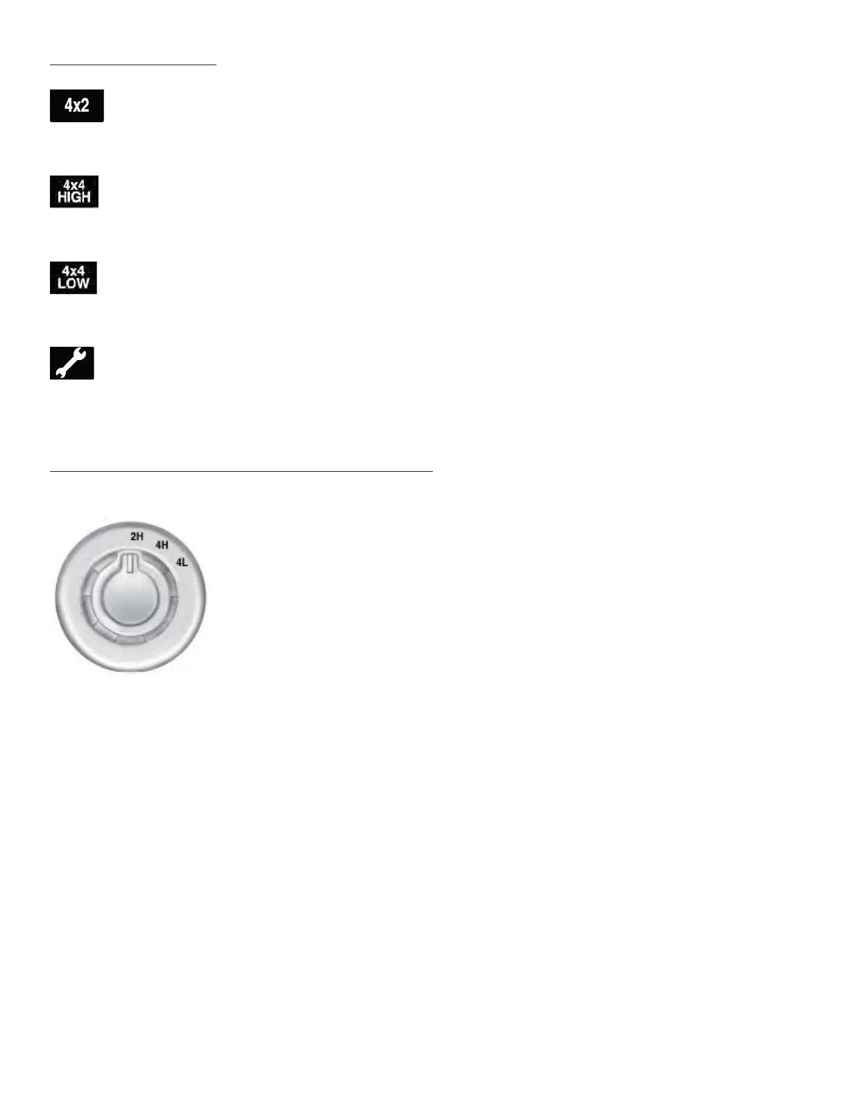 applications such as deep sand, steep grades, or pulling heavy objects. Refer to Shiing to/from 4L (4x4 Low) (pg.