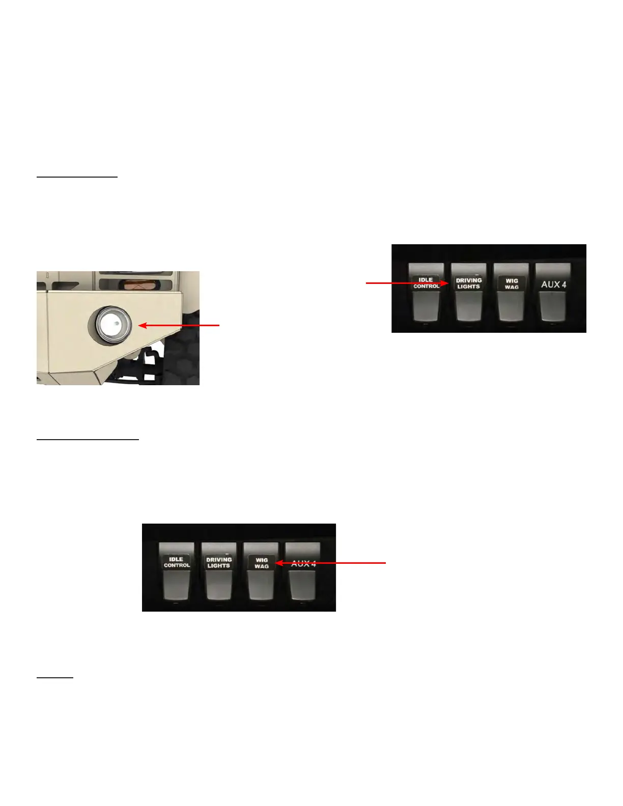 Wig-Wag Lighting is controlled by toggling the switch labeled “Wig-Wag” upwards. e switch will illuminate