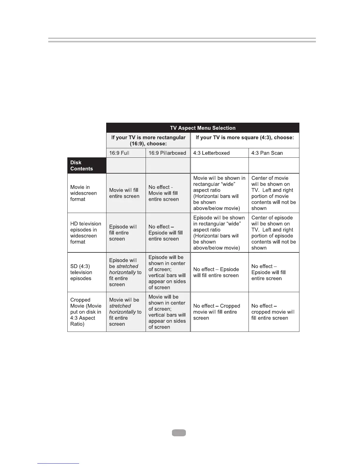 5.2.3 TV Aspect: Select right video ratio based on your TV. ( Refer to below table)