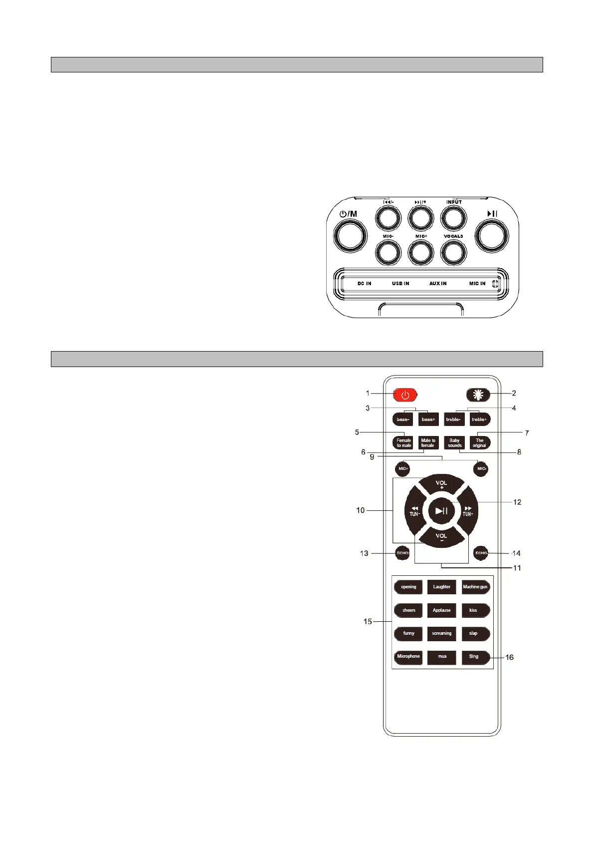 4. Mikrofon +/-: Indstil lydstyrken for mikrofonen;