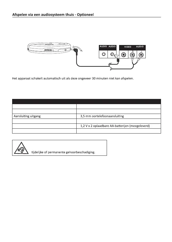 Schokbeveiliging CD Audio = 45 seconden, MP3-schijven = 120 seconden