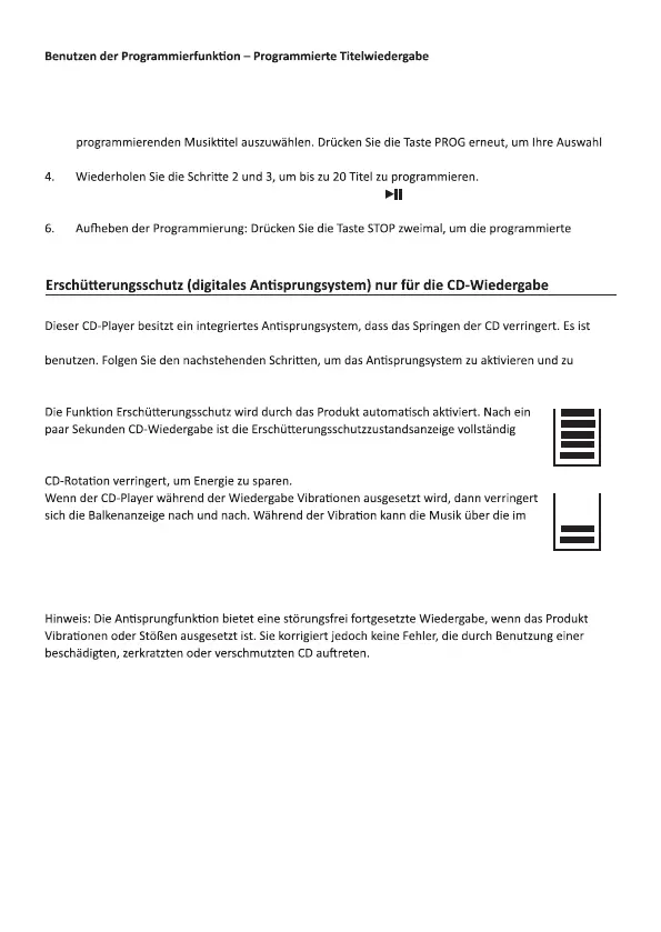 beispielsweise dann nützlich, wenn Sie den CD-Player während des Gehens oder einer Autofahrt