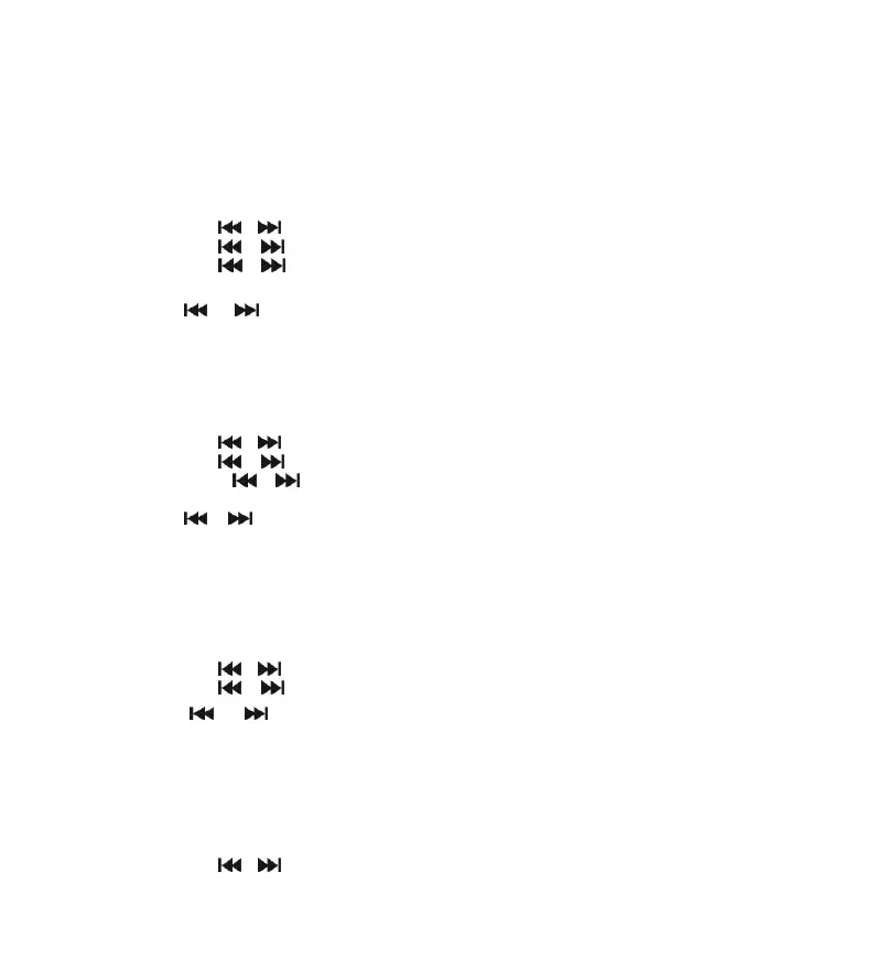 6. Druk op de - of -toets om te wisselen tussen 12- of 24-uurs weergave. Maak uw keuze en druk vervolgens