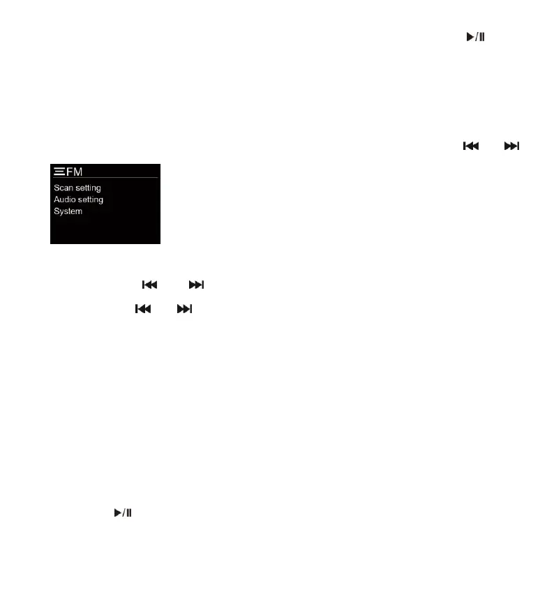3. Drücken Sie die - oder -Taste, um „Strong stations only“ (Nur Radiosender mit starkem Signal) oder „All
