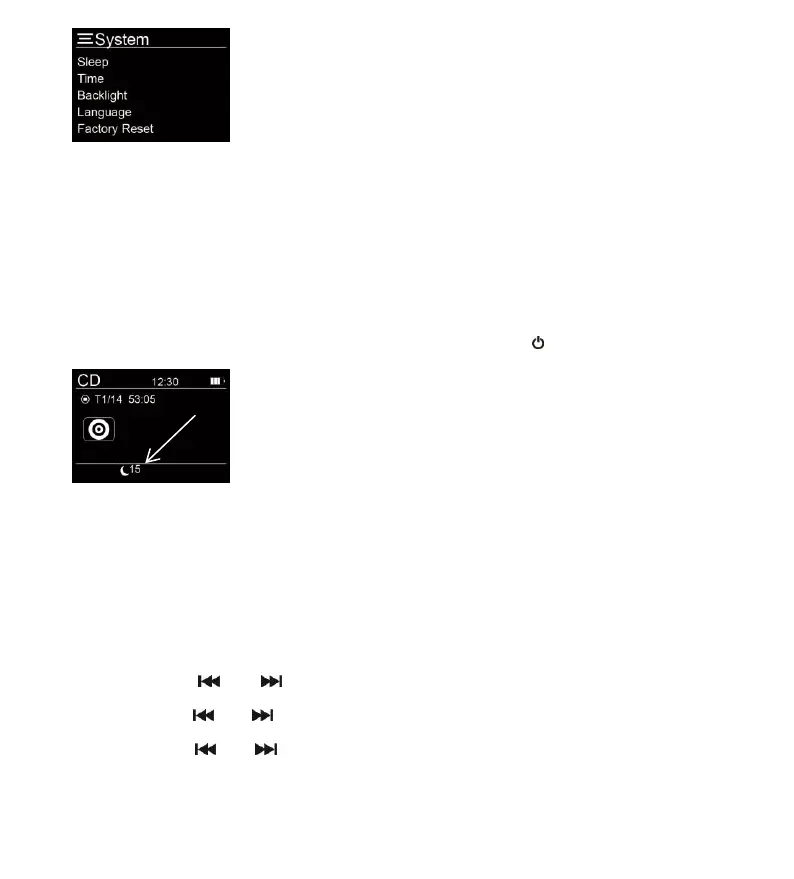 Sie können den Einschlaftimer auf „off“ (aus), 15, 30, 45, 60 und 90 Minuten einstellen.