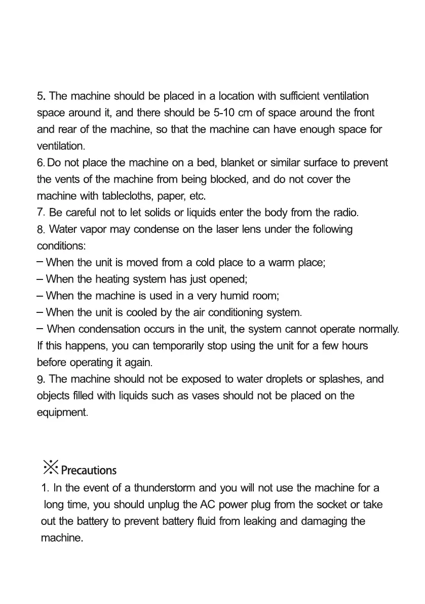 3.Do not use the machine near heat sources, including radiator pipes,