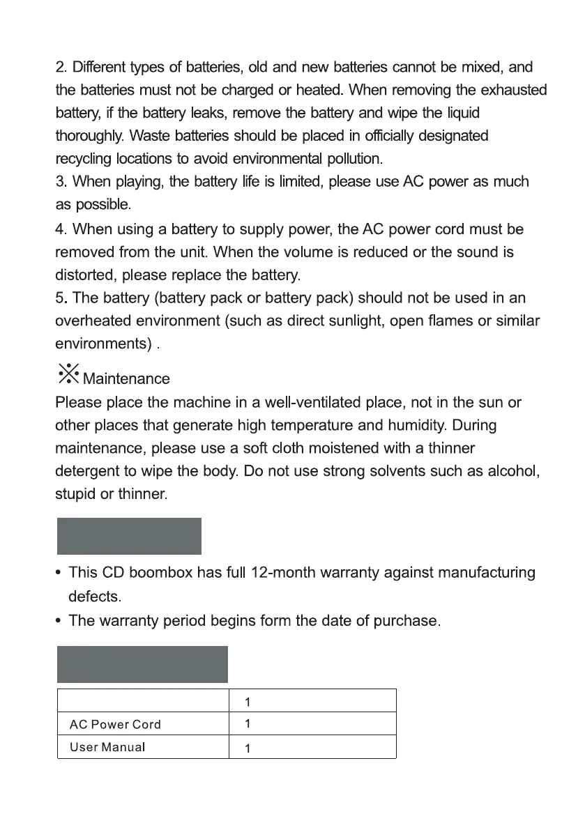 LENCO CD-X9B - Warranty; Packing List