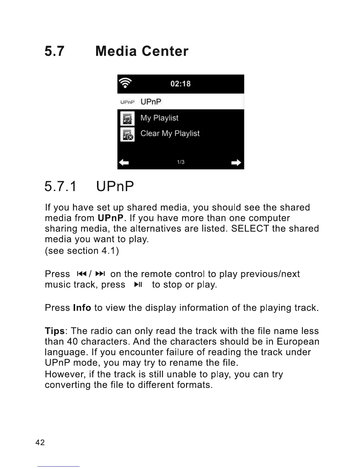 LENCO CR-2003 - Media Center Operations; UPnP Media Playback