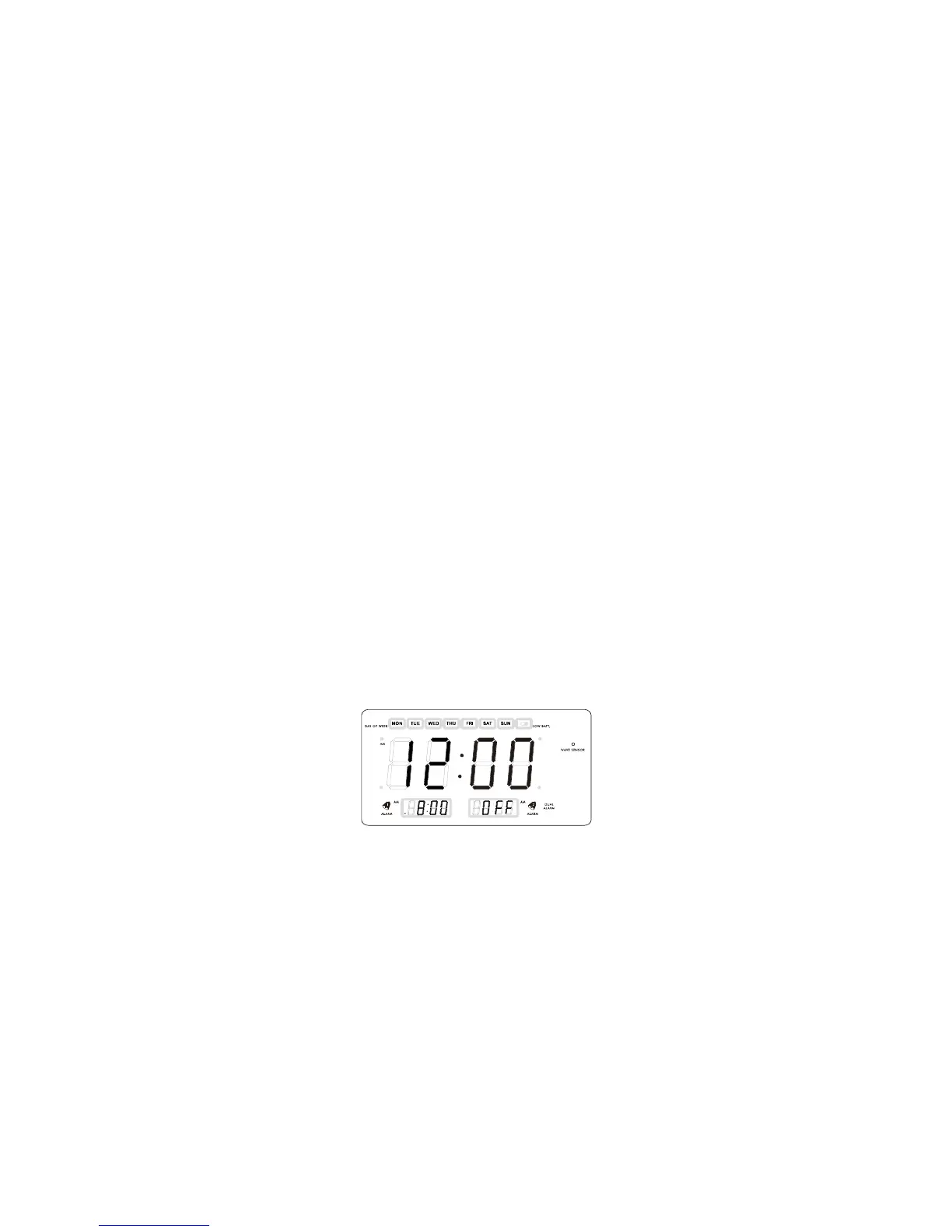 4.) When the desired wake up time appears on the display, release the ALARM 1 or ALARM 2