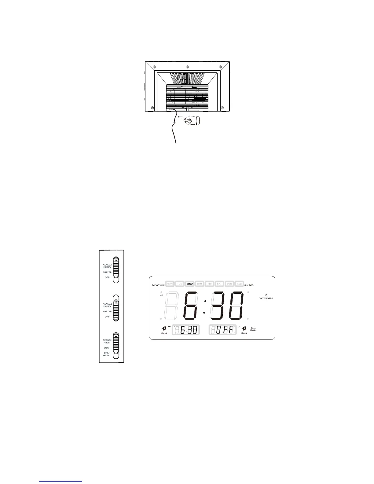 3.) Set the ALARM selector switch for one or both alarms to the “RADIO” position. The