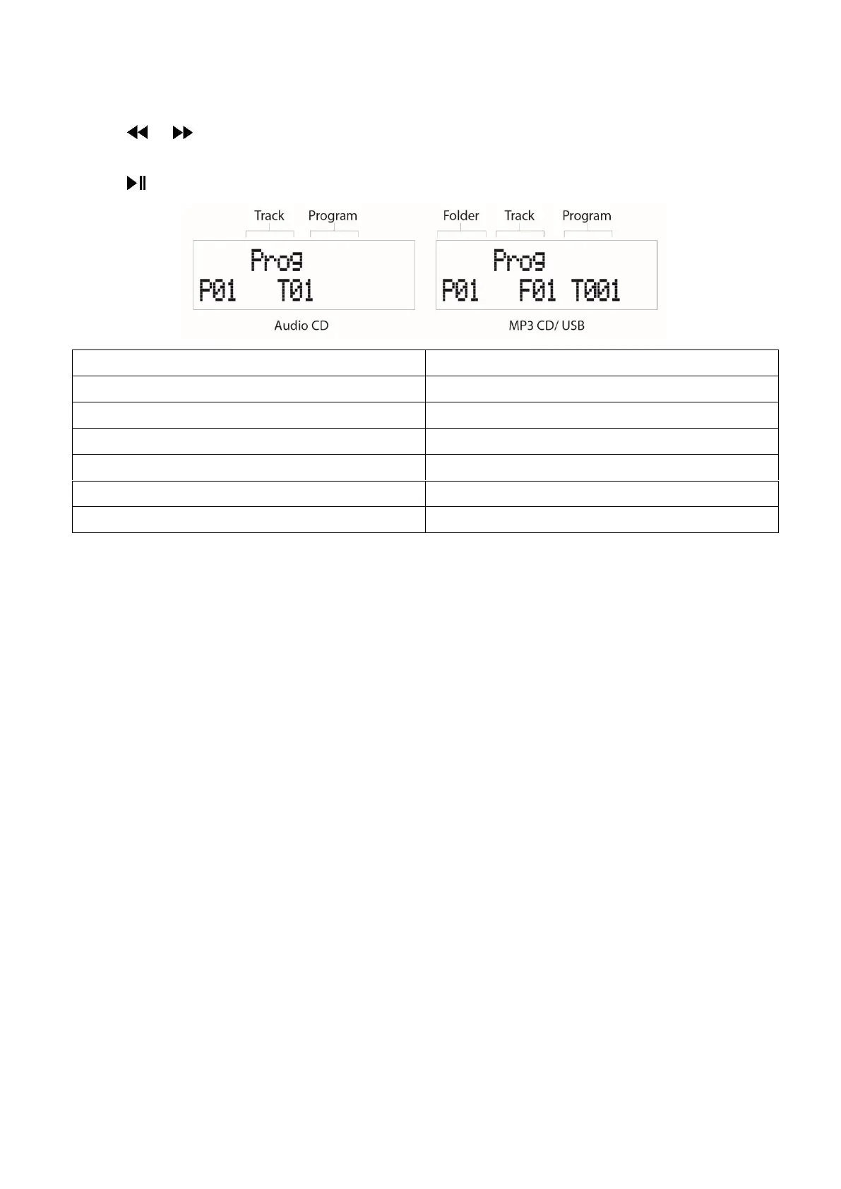Houd in de CD/USB-stopmodus de knop “P1/Prog” ingedrukt om het programma afspeelmenu te openen.