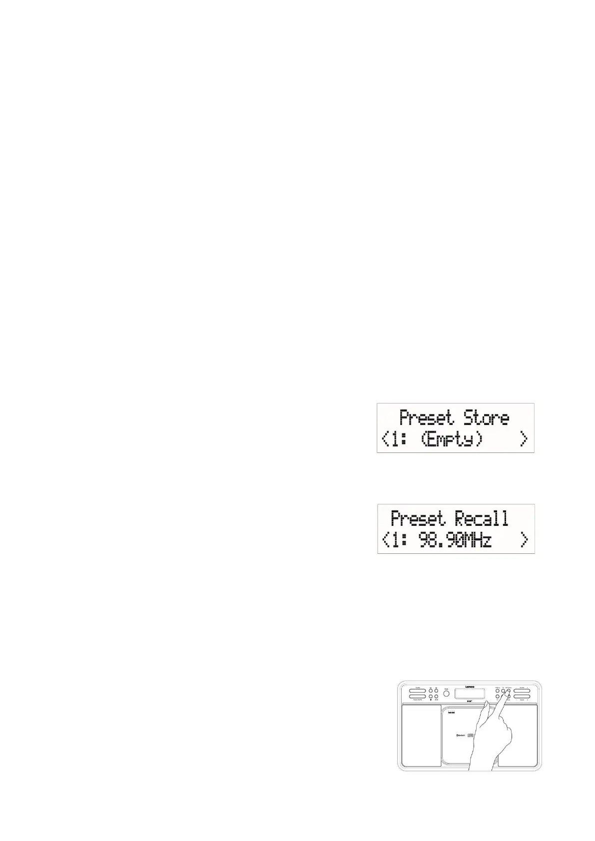 2. Druk eenmaal op “P4 +” om het menu Preset Recall (Voorkeuzezenders
