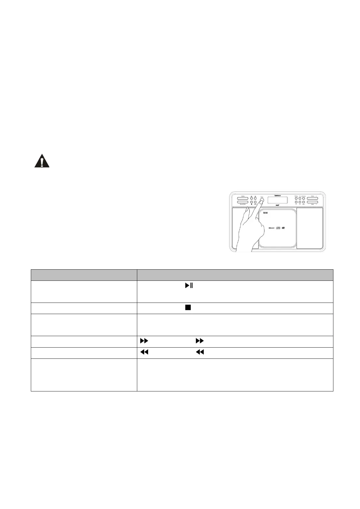 Hinweis: Das Fortsetzen der Wiedergabe wird abgebrochen, wenn Sie (1) das CD-Fach öffnen oder (2) das Gerät ausschalten
