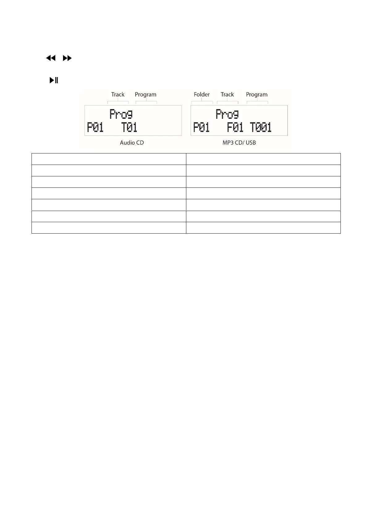 En modo parada CD/USB Stop, mantenga pulsado “P1/Prog”, para entrar en el menú de reproducción de programa.
