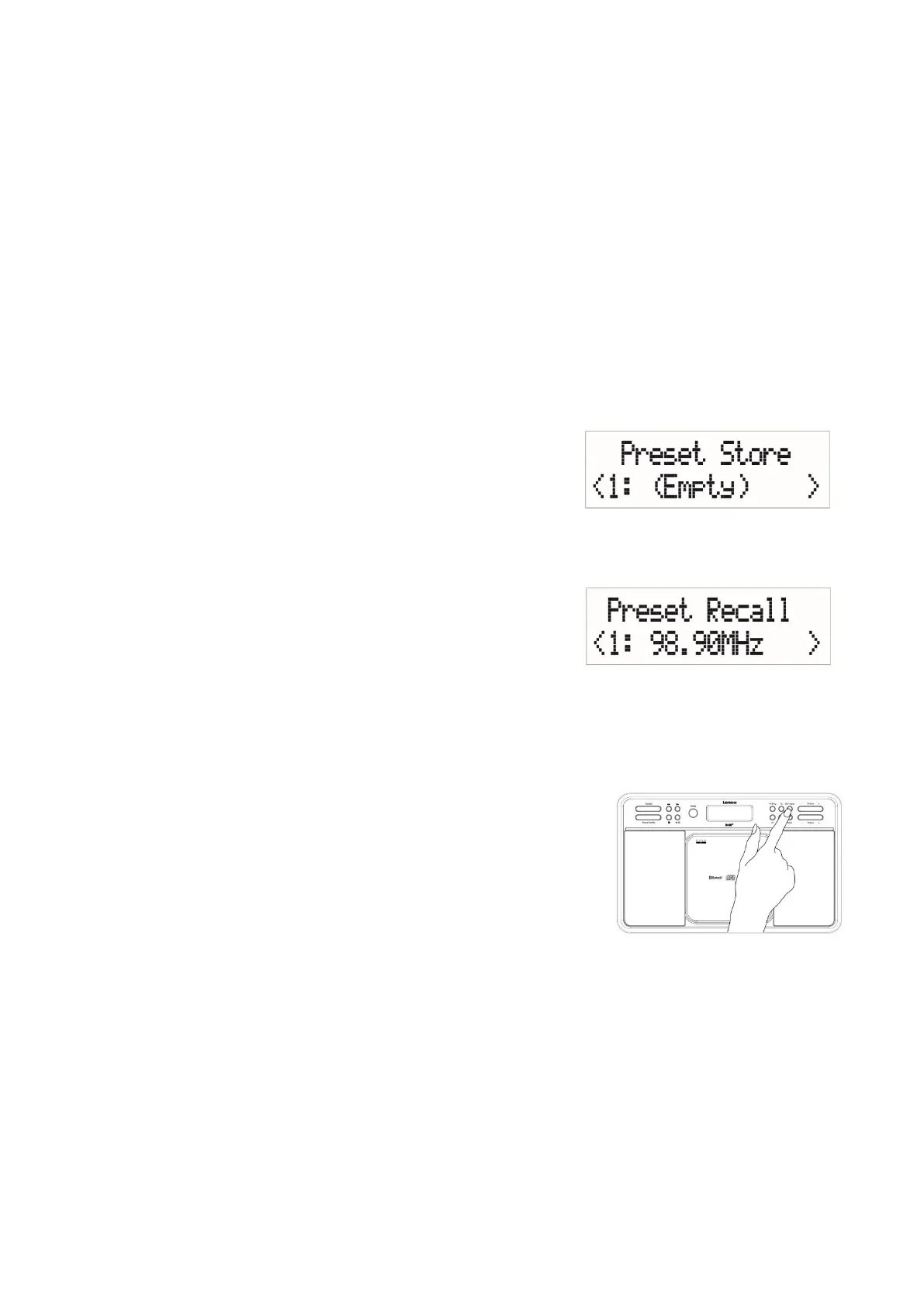 2. Press and hold “P1/P2/P3” buttons to store station directly.