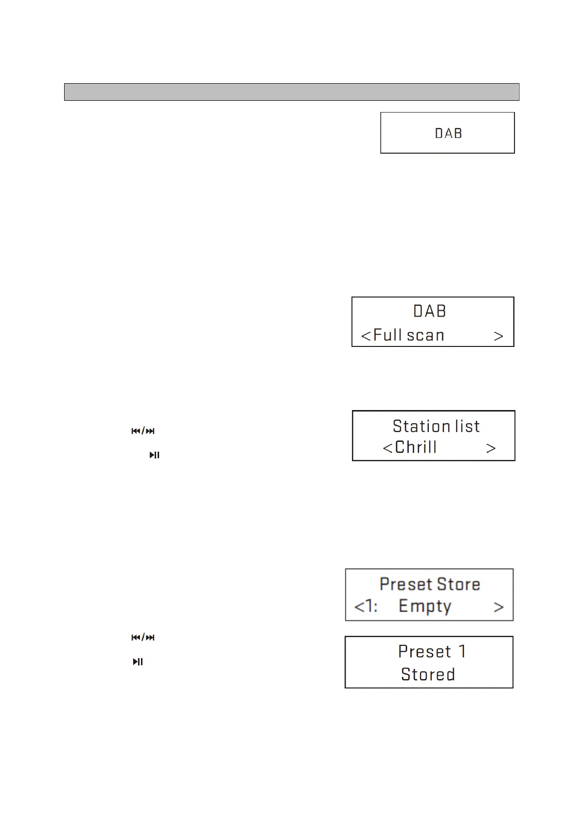 The first time you use the unit, or if the station list is empty, the radio automatically performs a full