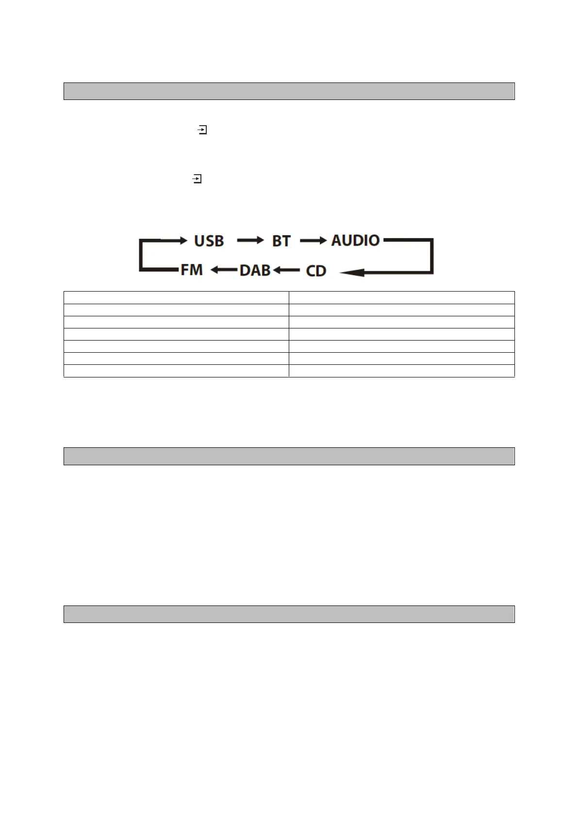 Drücken Sie mehrfach die Taste am Gerät, um die DAB, FM, USB, BT, AUDIO oder CD