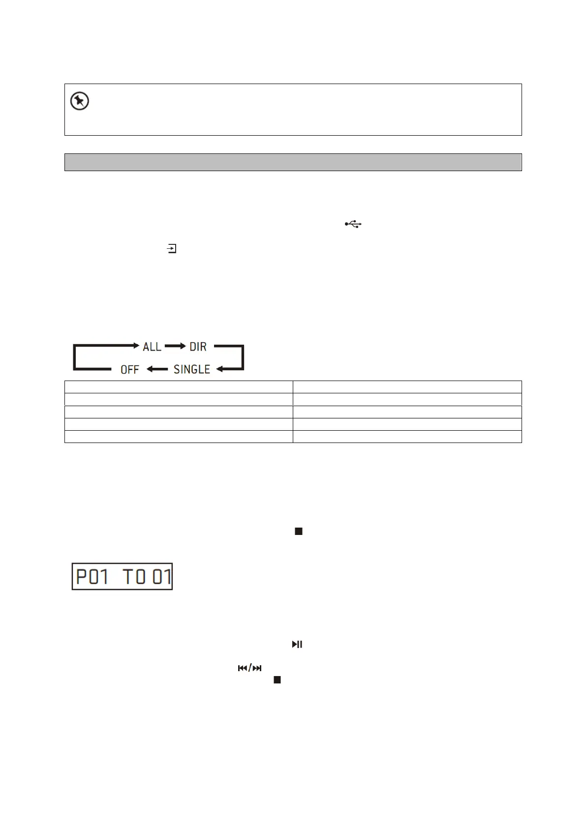 Bei dem USB Gerät, kann EINE und ALLE wiederholt abspielen eingestellt werden, indem man