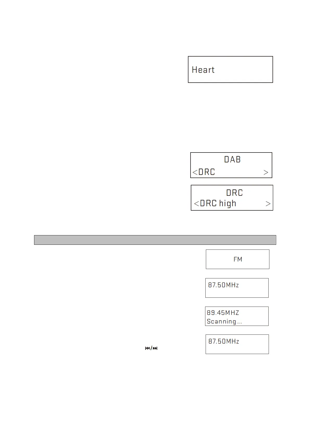 de la bande FM, tout en affichant la fréquence actuelle l'écran.