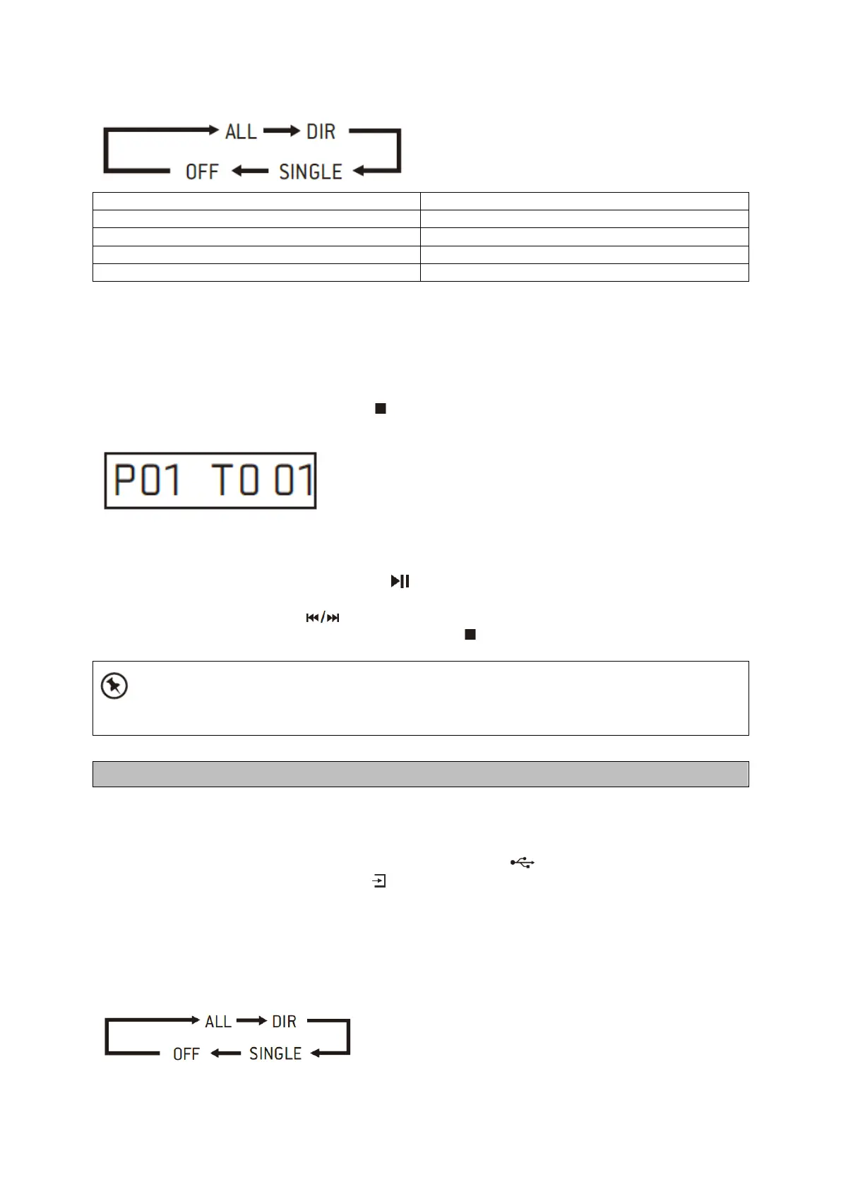 En mode USB, vous pouvez répéter la lecture d'un morceau (ONE) ou de plusieurs morceaux