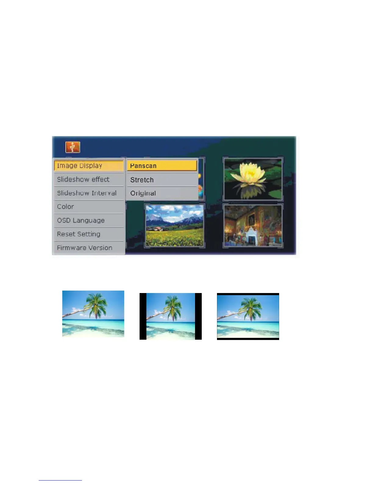 Select Image Display and then press Play button to show “Stretch/Panscan/Original