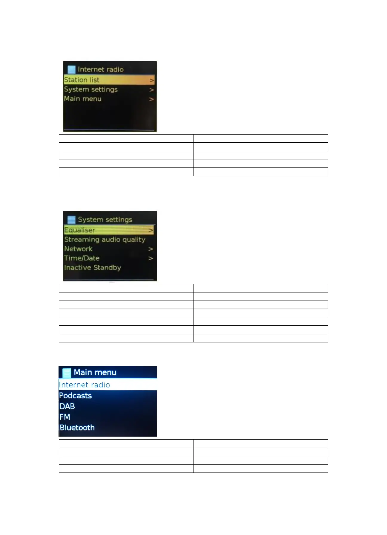 Das Hauptmenü bietet eine alternative Methode für die Auswahl von Wiedergabemodi sowie