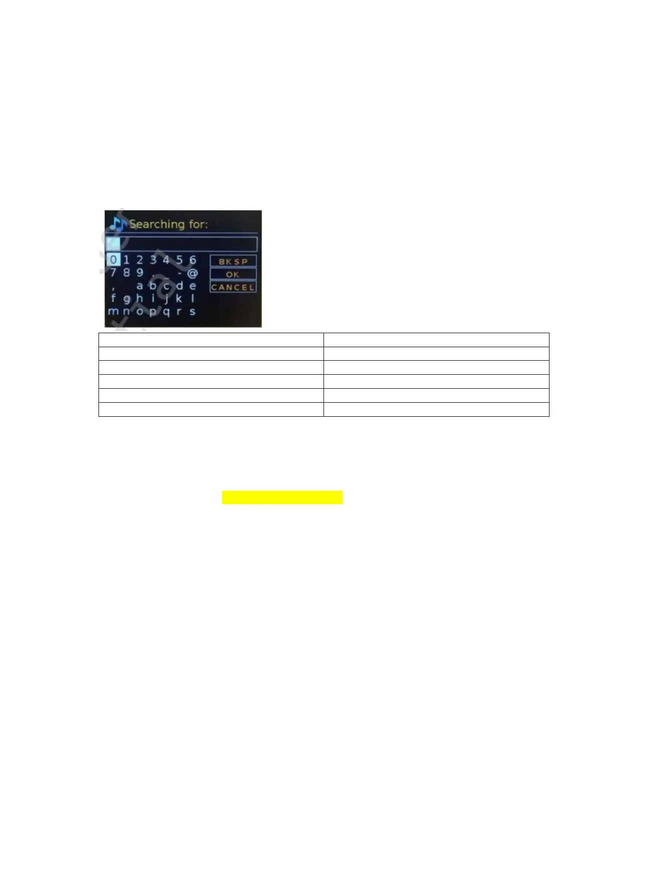 knob control, press the Info key, to jump to the BKSP (backspace) option.