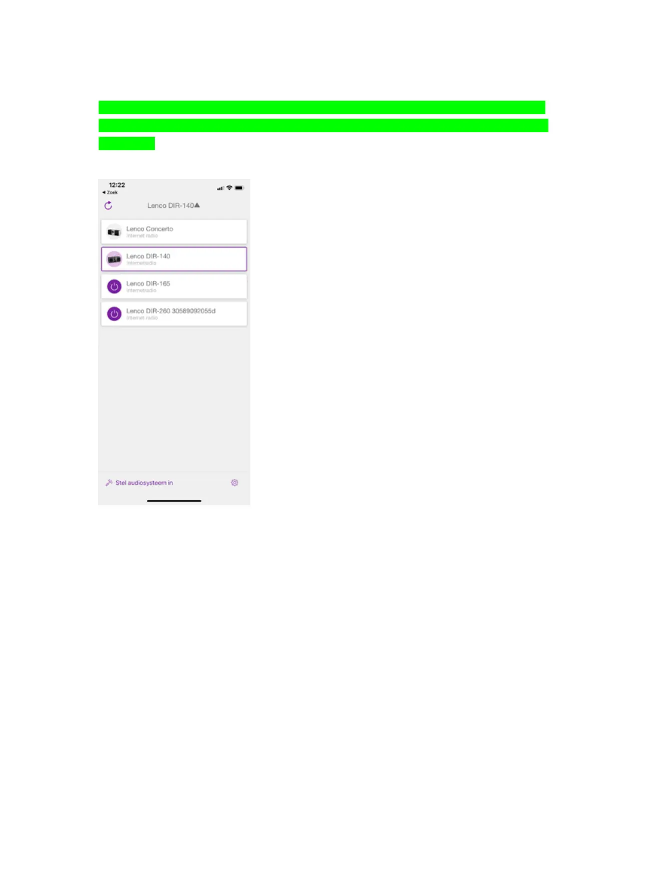 of audio devices found. Select the Lenco DIR-165. Now you can start controlling the device with your