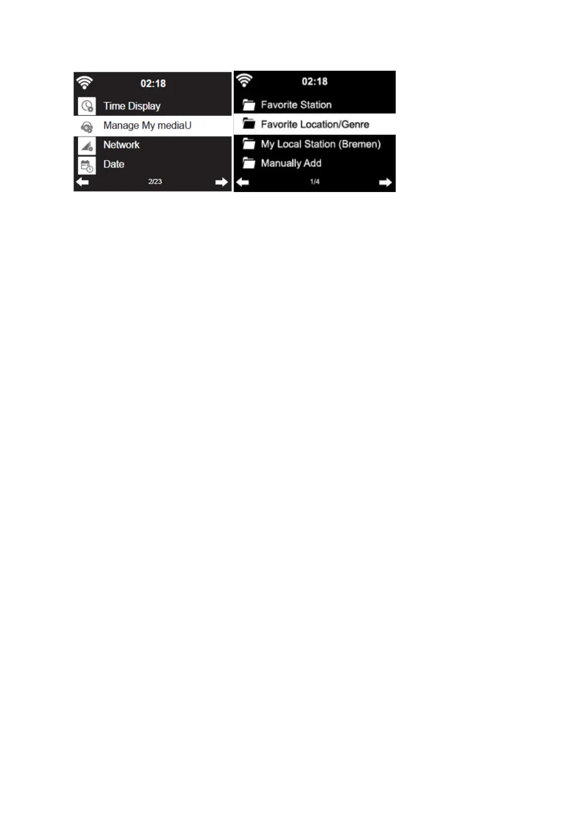 Emisora de radio/música: Enumera todas las emisoras de radio. Busque usted mismo las emisoras