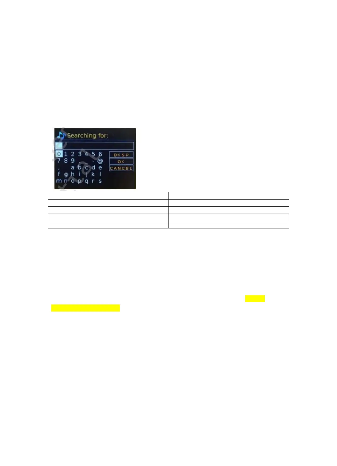l’écran. Les trois options « BKSP » (RETOUR), « OK » et « CANCEL » (ANNULER) font partie de la
