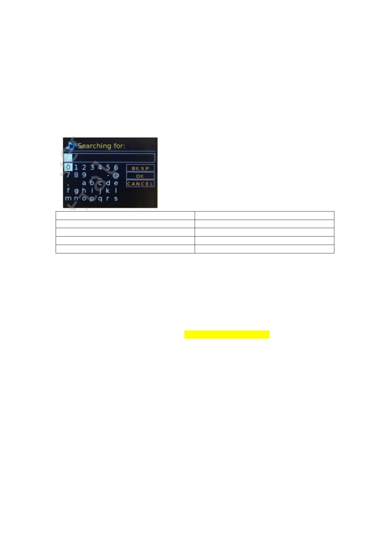 comandos y caracteres. Pulse la tecla Info para saltar a la opción de comando BKSP (Retroceso),