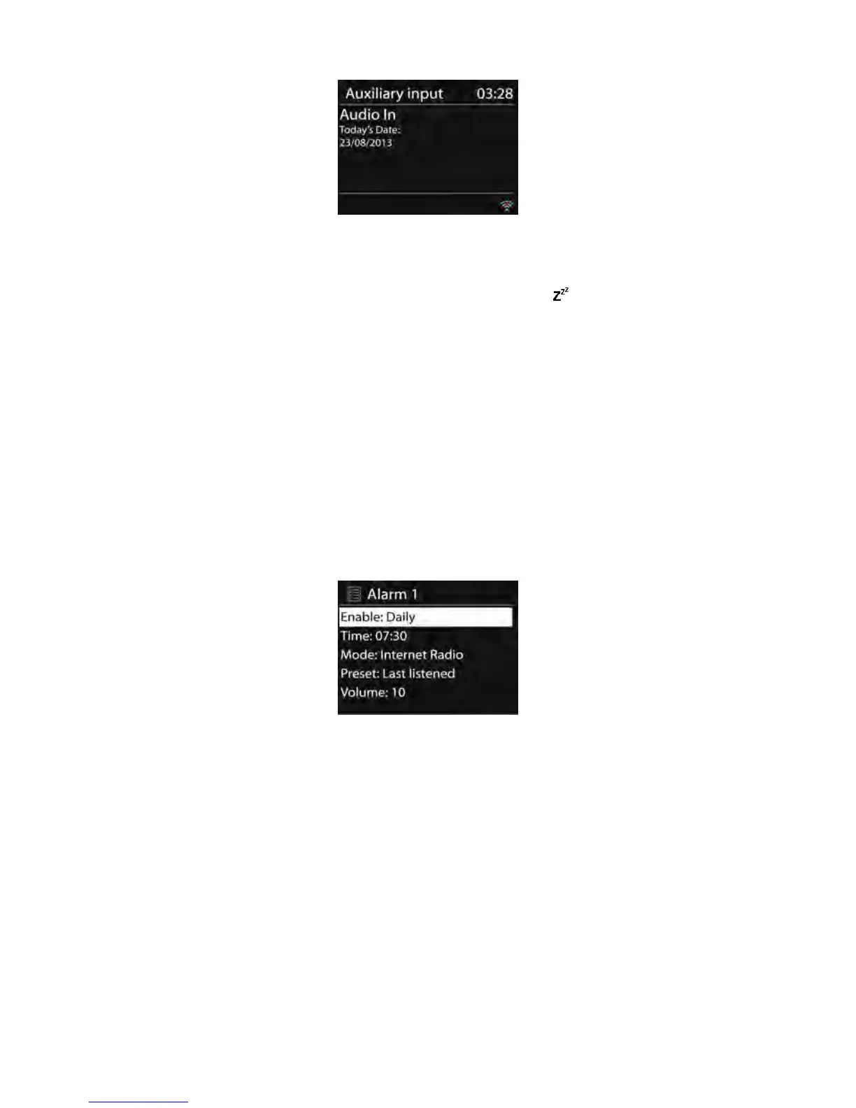 Deux alarmes de r é veil avec une fonction de sommeil sont disponibles