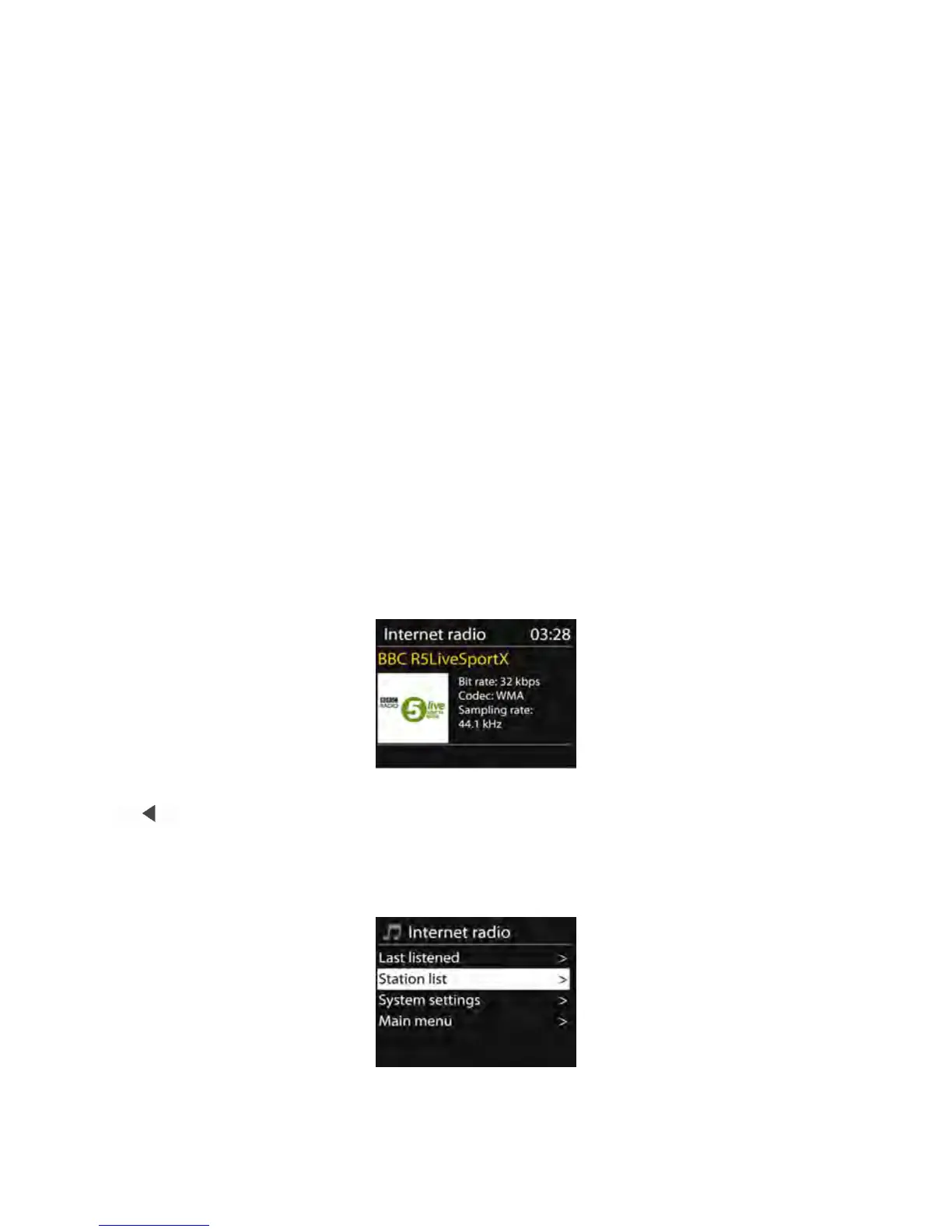 Mientras escuche una emisora de radio por Internet, puede pulsar BACK