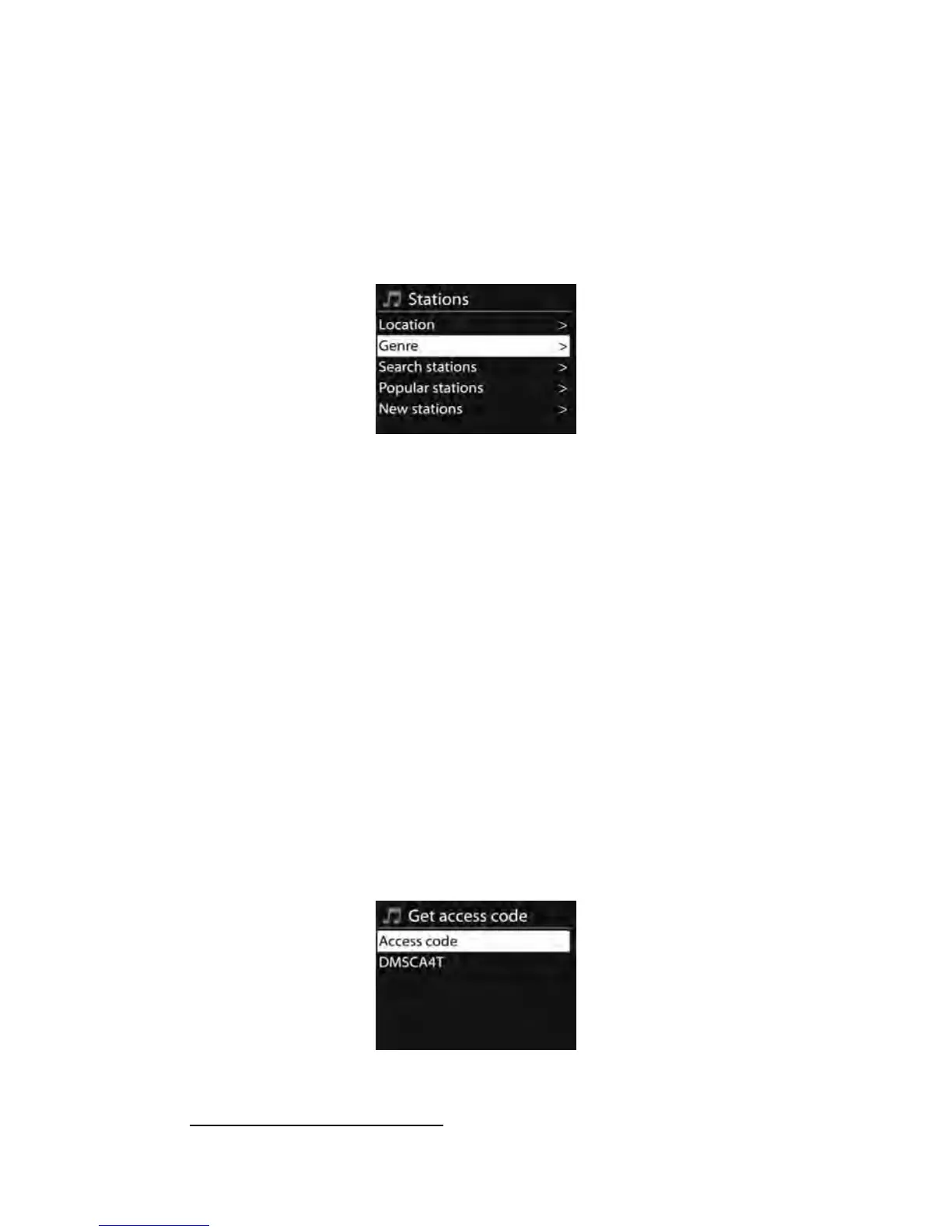 Para registrar el dispositivo, elija Station list (Lista de emisoras) > Help
