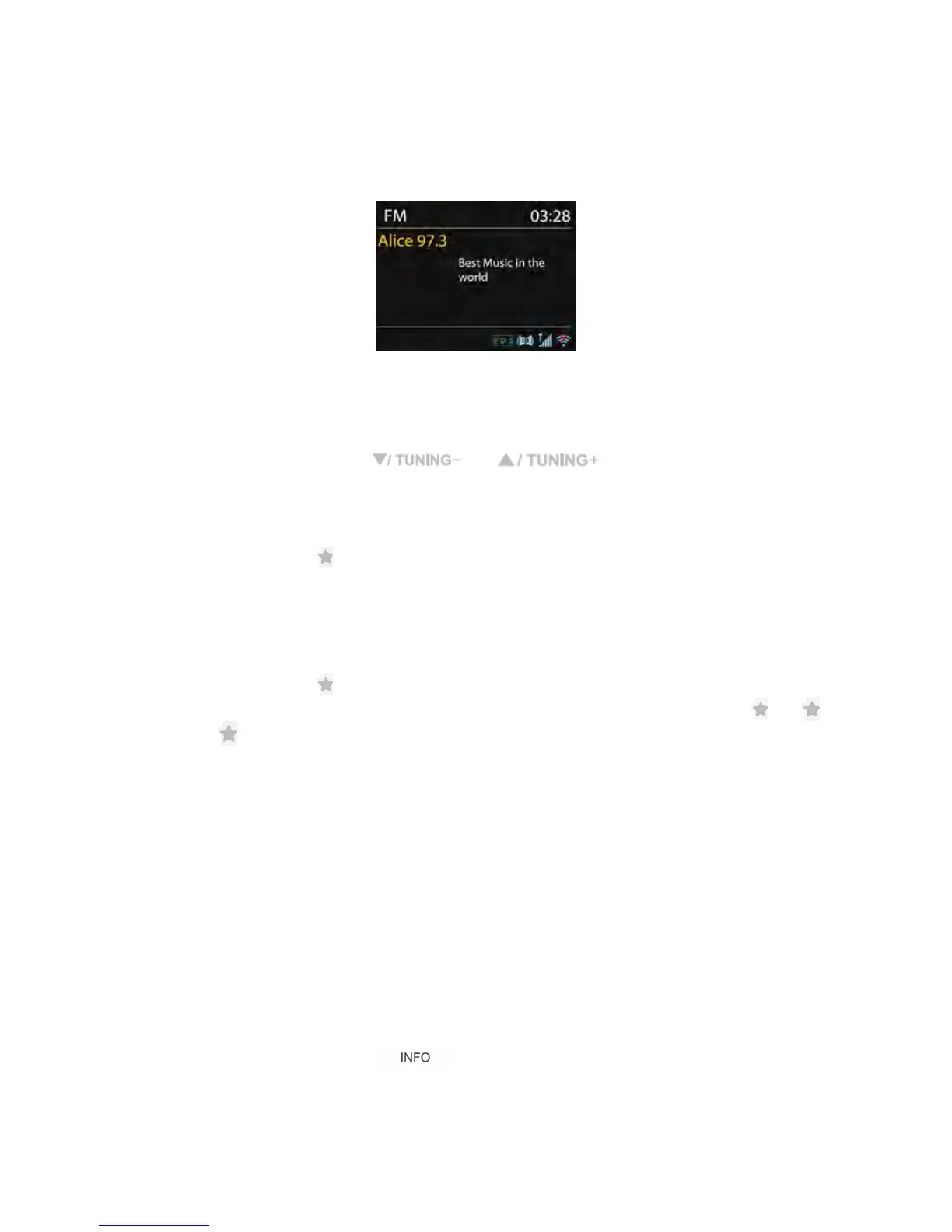 Puede almacenar hasta 10 de sus emisoras favoritas en la memoria.