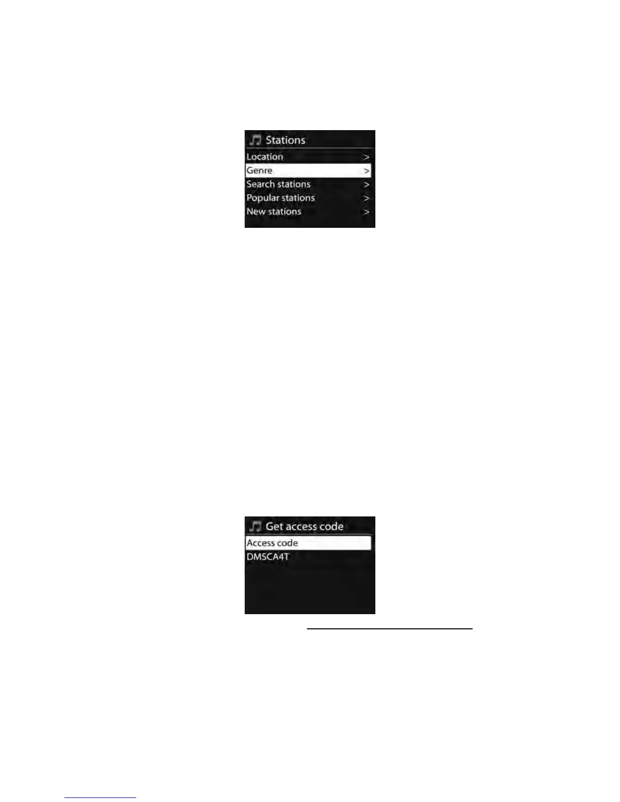 Om uw apparaat te registreren, kies Station list (Stationslijst) > Help